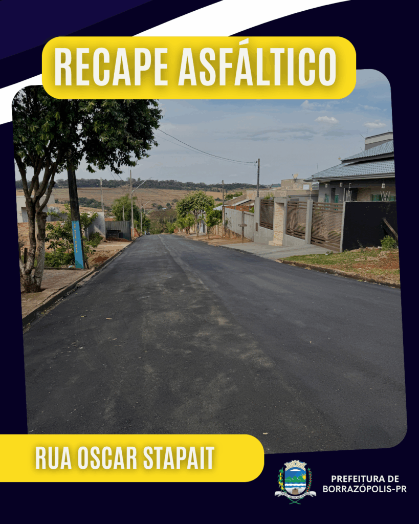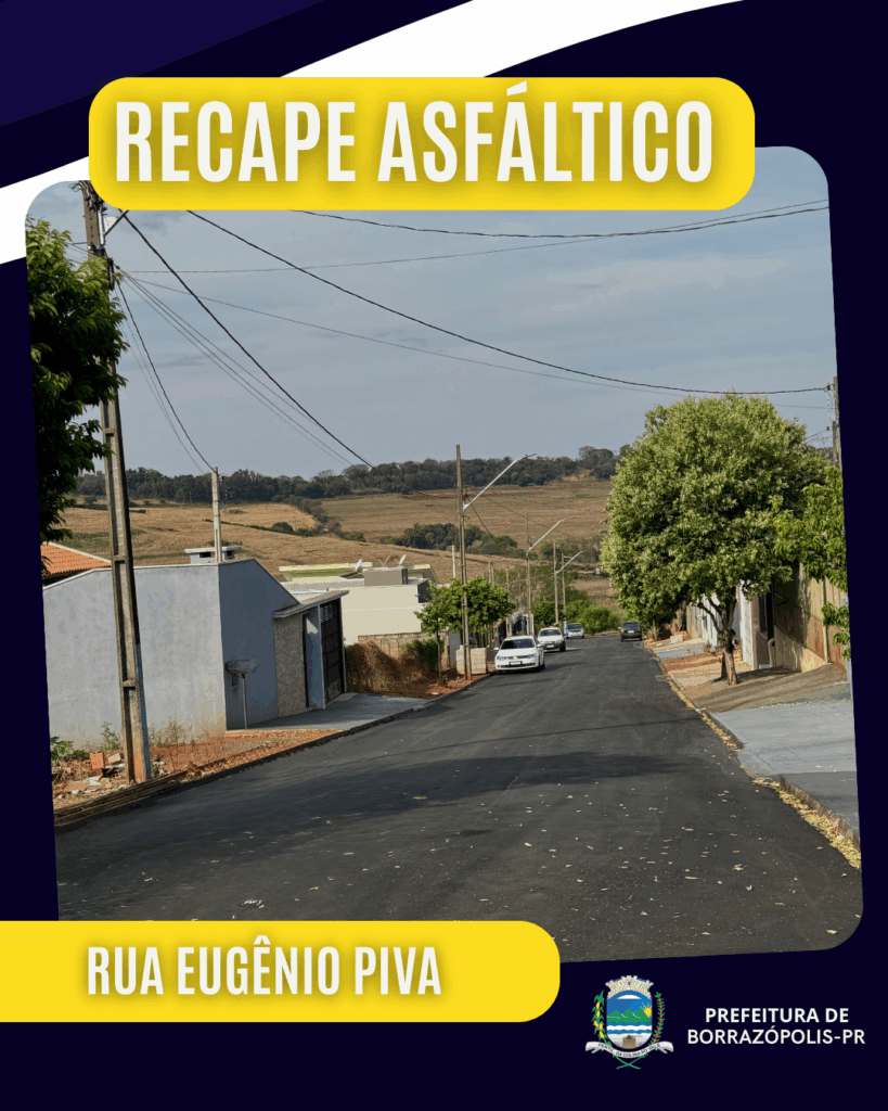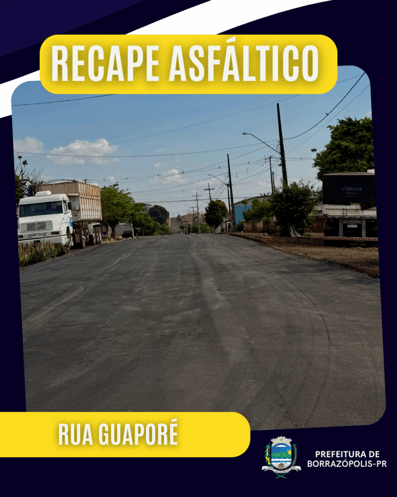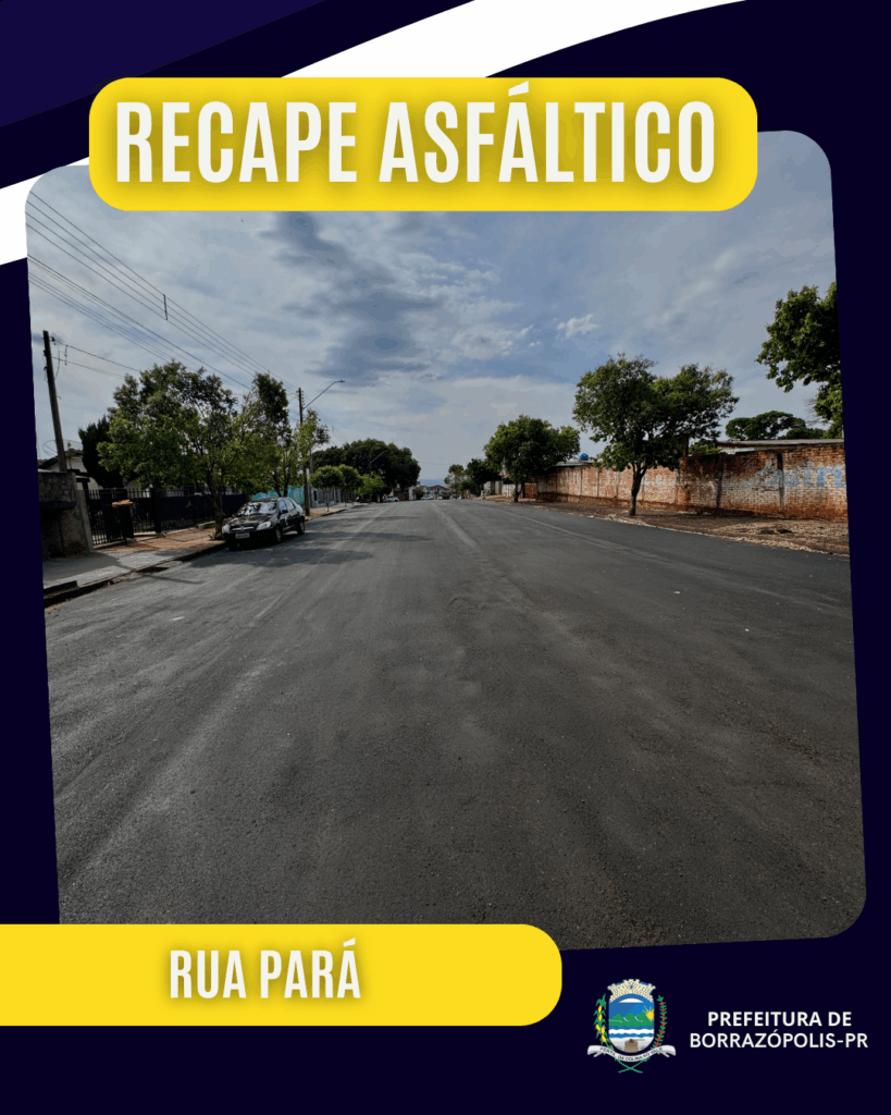 A Prefeitura Municipal de Borrazópolis segue investindo em melhorias na infraestrutura urbana. Diversas ruas da cidade estão recebendo recape asfáltico, garantindo mais segurança e qualidade no tráfego de veículos e pedestres.